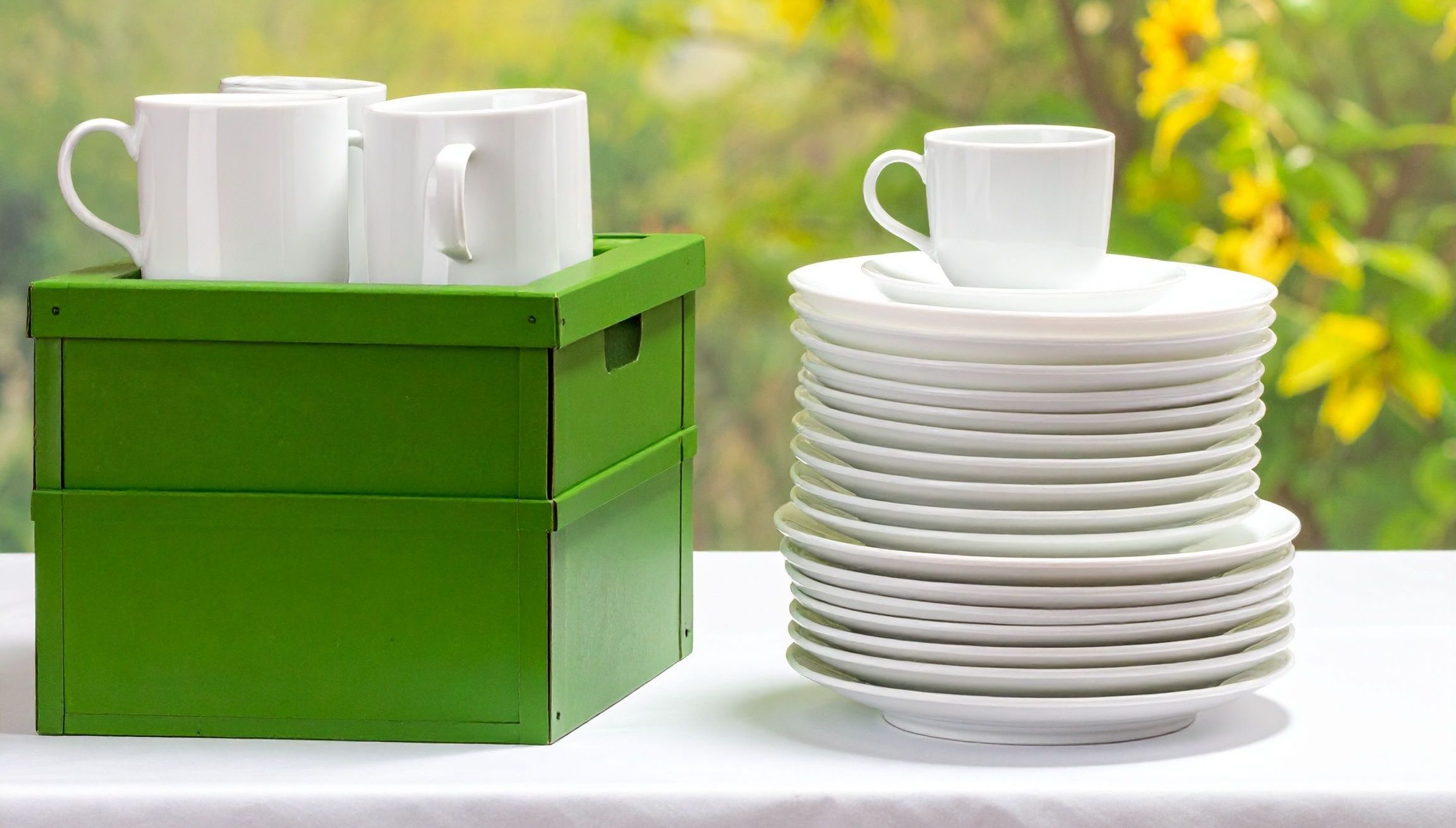 Ablauf: Sie vereinbaren mit uns einen Abholtermin und bekommen die gewünschte Menge an Geschirr in Plastikboxen. Zum vereinbarten Zeitpunkt bringen Sie uns das gespülte Geschirr wieder zurück. Sollte etwas kaputtgegangen oder abhanden gekommen sein, berechnen wir 0,50 € je fehlendem Geschirrteil für Ersatz.